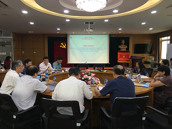 Thứ tư, Viện đã chủ trì tiến hành nhiều hoạt động nghiên cứu khoa học cũng góp phần cung cấp cơ sở lý luận và thực tiễn hoạch định chính sách, pháp luật phục vụ quá trình hội nhập quốc tế về tư pháp, pháp luật của Việt Nam. Từ năm 2017 đến nay, Viện đã triển khai Chương trình nghiên cứu khoa học cấp Bộ “Những vấn đề pháp lý mới phát sinh trong tư pháp quốc tế và trong khuôn khổ Hội nghị La Hay về tư pháp quốc tế” với hàng chục đề tài, hội thảo nhánh để nhận diện được các xu hướng phát triển của tư pháp quốc tế hiện nay trên thế giới, đánh giá thực trạng lĩnh vực tư pháp quốc tế ở Việt Nam; nghiên cứu khả năng gia nhập các điều ước quốc tế của Hội nghị La Hay về tư pháp quốc tế để nhận biết các thuận lợi, khó khăn, thách thức, từ đó đề xuất các kiến nghị cụ thể về gia nhập từng văn kiện cụ thể của Hội nghị La Hay.