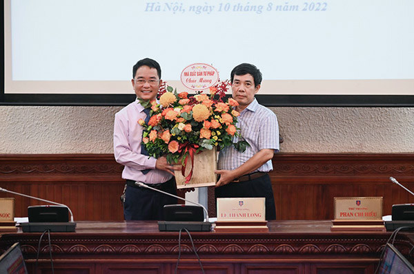 Chiều 10/8, tại cuộc họp Giao ban Thủ trưởng các đơn vị, Bộ trưởng Bộ Tư pháp Lê Thành Long đã trao Quyết định bổ nhiệm lãnh đạo cấp Vụ của Tạp chí Dân chủ và Pháp luật, Nhà xuất bản Tư pháp, Cục Hộ tịch quốc tịch chứng thực.