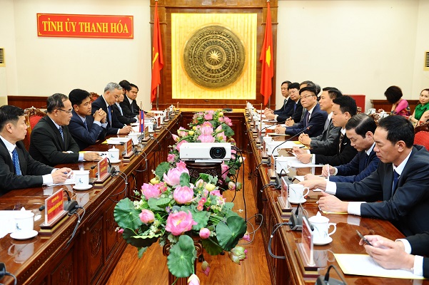 Mở đầu buổi làm việc, đồng chí Đỗ Trọng Hưng thông tin về những thành tựu đạt được của tỉnh Thanh Hóa trên tất cả các lĩnh vực, đặc biệt là các chỉ số ấn tượng về tăng trưởng kinh tế. Bí thư Tỉnh ủy Thanh Hóa cũng cho biết, trên nền tảng mối quan hệ hữu nghị vĩ đại, tình đoàn kết đặc biệt và sự hợp tác toàn diện Lào - Việt Nam, tỉnh Thanh Hóa có mối quan hệ đoàn kết đặc biệt với tỉnh Hủa Phăn anh em. Kể từ khi ký kết hữu nghị hợp tác vào tháng 4/1967, mối quan hệ giữa cấp ủy, chính quyền và Nhân dân hai tỉnh Thanh Hóa - Hủa Phăn luôn phát triển rực rỡ.