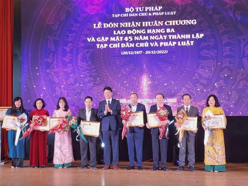 Chiều ngày 20/12/2022, tại Hà Nội, Tạp chí Dân chủ và Pháp luật đã long trọng tổ chức Lễ kỷ niệm 45 năm Ngày thành lập (20/12/1977 - 20/12/2022) và đón nhận Huân chương Lao động hạng Ba - Phần thưởng cao quý được Đảng và Nhà nước trao tặng.