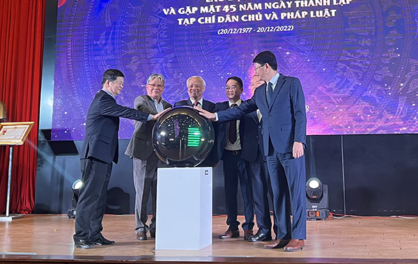Đồng thời, nhân dịp này, các đồng chí nguyên Lãnh đạo Đảng, Nhà nước; Lãnh đạo, nguyên Lãnh đạo Bộ Tư pháp; Lãnh đạo, nguyên Lãnh đạo Tạp chí đã nhấn nút công bố Tạp chí Dân chủ và Pháp luật điện tử và logo của Tạp chí - mở ra một trang mới cho sự phát triển lớn mạnh của Tạp chí trong tương lai, góp phần đáp ứng tốt hơn nhu cầu thông tin của các cấp chính quyền, các nhà nghiên cứu khoa học và người dân, là địa chỉ tin cậy về thông tin pháp lý không chỉ của Ngành Tư pháp mà còn của cả xã hội.