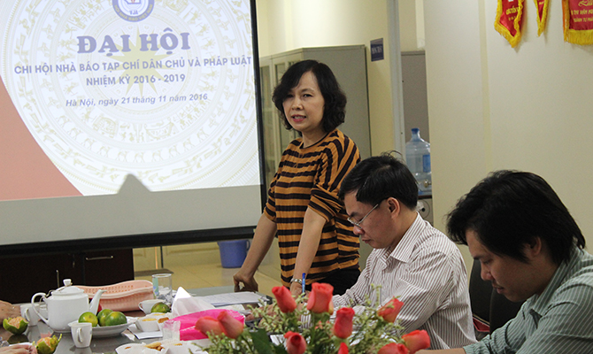 Phát biểu chỉ đạo tại Đại hội, đồng chí Hà Thị Hồng Dương đã biểu dương những kết quả mà Chi hội Nhà báo Tạp chí Dân chủ và Pháp luật đạt được trong nhiệm kỳ qua, đặc biệt là Chi hội Tạp chí đã khắc phục khó khăn về số lượng hội viên để hoàn thành các mục tiêu đề ra và có đóng góp tích cực vào sự phát triển của Tạp chí. Đồng chí Hà Thị Hồng Dương cũng đề nghị trong nhiệm kỳ tới, Chi hội Tạp chí cần tiếp tục bồi dưỡng, nâng cao số lượng và chất lượng hội viên thông qua việc cử hội viên theo học các lớp do Trung tâm Bồi dưỡng nghiệp vụ của Hội Nhà báo Việt Nam tổ chức; tích cực tham gia các phong trào và các giải báo chí do Hội Nhà báo Việt Nam phát động; xây dựng các chương trình hành động cụ thể cho việc tham gia các hoạt động xã hội, giao lưu từ thiện… Bên cạnh đó, Chi hội Tạp chí cần tập trung bồi dưỡng, giới thiệu các cán bộ đủ điều kiện tham gia vào Hội Nhà Báo Việt Nam, từ đó góp phần xây dựng Chi hội Nhà báo Tạp chí Dân chủ và Pháp luật đoàn kết, vững mạnh. Nhân dịp này, thay mặt Hội Nhà báo Việt Nam, đồng chí Hà Thị Hồng Dương gửi lời chúc mừng đến 02 đồng chí trong Ban Thư ký Chi hội Tạp chí nhiệm kỳ 2016 - 2019 vừa được bầu tại Đại hội và chúc mừng sự thành công của Đại hội.