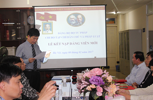 Thay mặt Đảng ủy Bộ Tư pháp, đồng chí Nguyễn Kim Tinh - Phó Bí thư thường trực Đảng ủy Bộ Tư pháp đã chúc mừng các đồng chí đảng viên và đồng thời ghi nhận những kết quả mà Tạp chí đã đạt được trong năm 2016 trong việc chú trọng công tác Đảng, đặc biệt là sự quan tâm của Chi ủy đến công tác phát triển đảng viên. Đồng thời, đề nghị các đồng chí đảng viên trong Chi bộ tiếp tục triển khai, thực hiện Nghị quyết số 04-NQ/TW ngày 30/10/2016 của Ban Chấp hành Trung ương Đảng Cộng Sản Việt Nam về tăng cường xây dựng chỉnh đốn Đảng, ngăn chặn, đẩy lùi sự suy thoái về tư tưởng chính trị, đạo đức, lối sống, những biểu hiện “tự diễn biến” và “tự chuyển hóa” trong nội bộ và Chỉ thị số 05-CT/TW ngày 15/5/2016 của Bộ Chính trị về “đẩy mạnh việc học tập và làm theo tư tưởng, đạo đức, phong cách Hồ Chí Minh”, tiếp tục kiện toàn Chi ủy Chi bộ ngày càng vững mạnh, hoàn thiện quy hoạch cấp ủy của Đảng bộ Bộ Tư pháp nhiệm kỳ 2020 - 2025.