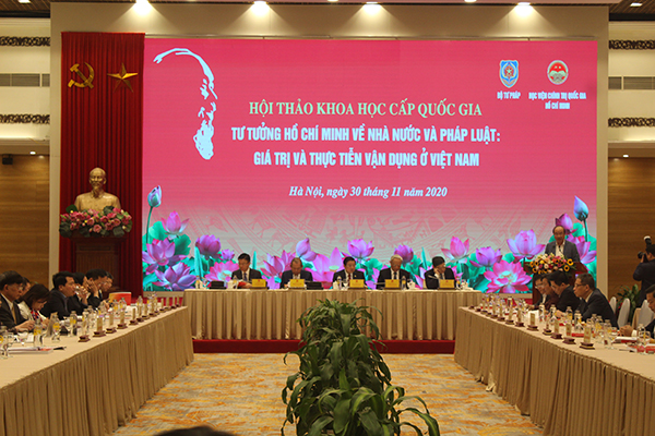 Tại buổi Hội thảo các đại biểu tham dự cũng đã được nghe các nhà khoa học, đại diện các bộ, ban, ngành trung ương trình bày các tham luận về: Tư tưởng Hồ Chí Minh về nhà nước và pháp luật; tư tưởng Hồ Chí Minh về kiểm soát quyền lực nhà nước; tổ chức và hoạt động của Quốc hội, của Chính phủ, của hệ thống Tòa án nhân dân theo tư tưởng Hồ Chí Minh; quan điểm Hồ Chí Minh về bản chất, vai trò, giá trị của pháp luật và mối quan hệ pháp luật với dân chủ, đạo đức; tư tưởng Hồ Chí Minh về giáo dục, rèn luyện đạo đức cách mạng và vận động Nhân dân trong phòng, chống tham nhũng…