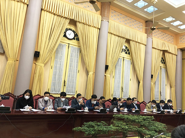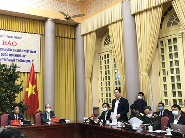 Sáng ngày 24/01/2022, tại Phủ Chủ tịch, Văn phòng Chủ tịch nước tổ chức họp báo công bố Lệnh của Chủ tịch nước về việc công bố Luật sửa đổi, bổ sung một số điều của Luật Đầu tư công, Luật Đầu tư theo phương thức đối tác công tư, Luật Nhà ở, Luật Đấu thầu, Luật Điện lực, Luật Doanh nghiệp, Luật Thuế tiêu thụ đặc biệt và Luật Thi hành án dân sự (gọi tắt là Luật sửa đổi, bổ sung) đã được Quốc hội nước Cộng hòa xã hội chủ nghĩa Việt Nam khóa XV, kỳ họp bất thường lần thứ nhất thông qua ngày 11/01/2022. Phó Chủ nhiệm Văn phòng Chủ tịch nước Phạm Thanh Hà chủ trì họp báo.