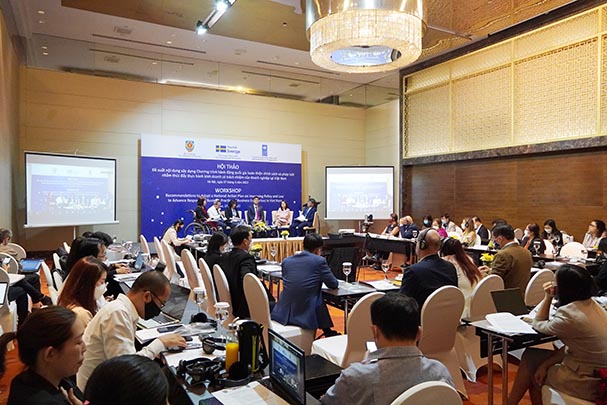 Tham dự trực tiếp tại Hội thảo có đại diện các Bộ, ngành, hiệp hội, tổ chức xã hội, tổ chức chính trị - xã hội, các trường đại học, viện nghiên cứu, doanh nghiệp, chuyên gia, nhà khoa học, như: Ủy ban Kinh tế của Quốc hội, Bộ Công Thương, Bộ Lao động, Thương binh và Xã hội, Bộ Ngoại giao, Bộ Quốc phòng, Liên đoàn Luật sư Việt Nam, Ngân hàng Nhà nước Việt Nam, Liên đoàn Thương mại và Công nghiệp Việt Nam, Tổng Liên đoàn lao động Việt Nam, Hội Liên hiệp Phụ nữ Việt Nam, Hội Luật gia Việt Nam, Học viện Chính trị Quốc gia Hồ Chí Minh, Trường Đại học Luật Thành phố Hồ Chí Minh, Trường Đại học Luật Hà Nội, Trường Đại học Kinh tế quốc dân, Trường Đại học Cần Thơ... Đồng thời, Hội thảo còn có sự tham dự của đại diện một số Đại sứ quán, tổ chức quốc tế như UNICEF, ILO, IOM… và tham dự trực tuyến của các Sở Tư pháp, Sở Công Thương, Sở Tài nguyên và Môi trường, Sở Kế hoạch và Đầu tư, Sở Lao động, Thương binh và Xã hội và một số doanh nghiệp, tổ chức, hiệp hội tại một số địa phương.