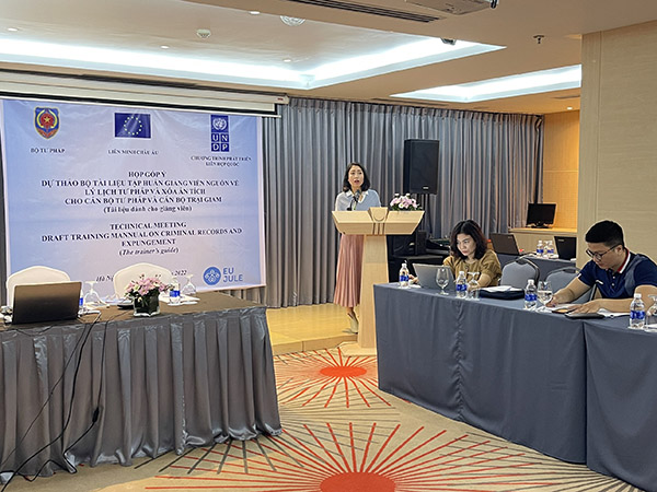 Trong khuôn khổ Dự án EU JULE do Liên minh châu Âu tài trợ, Trung tâm Lý lịch tư pháp quốc gia đã chủ trì, phối hợp với UNDP xây dựng Bộ tài liệu đào tạo giảng viên nguồn (TOT) về lịch tư pháp và xóa án tích. Dự thảo Bộ tài liệu bao gồm kiến thức về các quy định pháp luật liên quan đến quản lý dữ liệu lý lịch tư pháp, cấp phiếu lý lịch tư pháp và việc xóa án tích, các kỹ năng làm việc với những người có yêu cầu cấp phiếu lý lịch tư pháp.