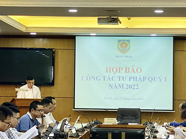 Mở đầu Họp báo, ông Nguyễn Quốc Hoàn - Chánh Văn phòng Bộ Tư pháp thông tin đến các cơ quan báo chí truyền thông về một số kết quả chủ yếu công tác tư pháp Quý I/202 và nhiệm vụ trọng tâm công tác tư pháp Quý II/2022.